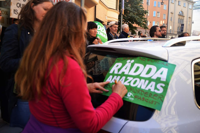 El 7 de septiembre se realizó una manifestación en Estocolmo por Las Amazonas. Activistas de diferentes organizaciones marcharon en las calles de Estocolmo con pancartas que decían "Salven Las Amazonas". La marcha terminó en la Embajada del Brasil.